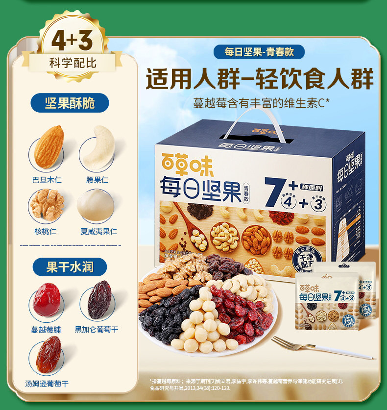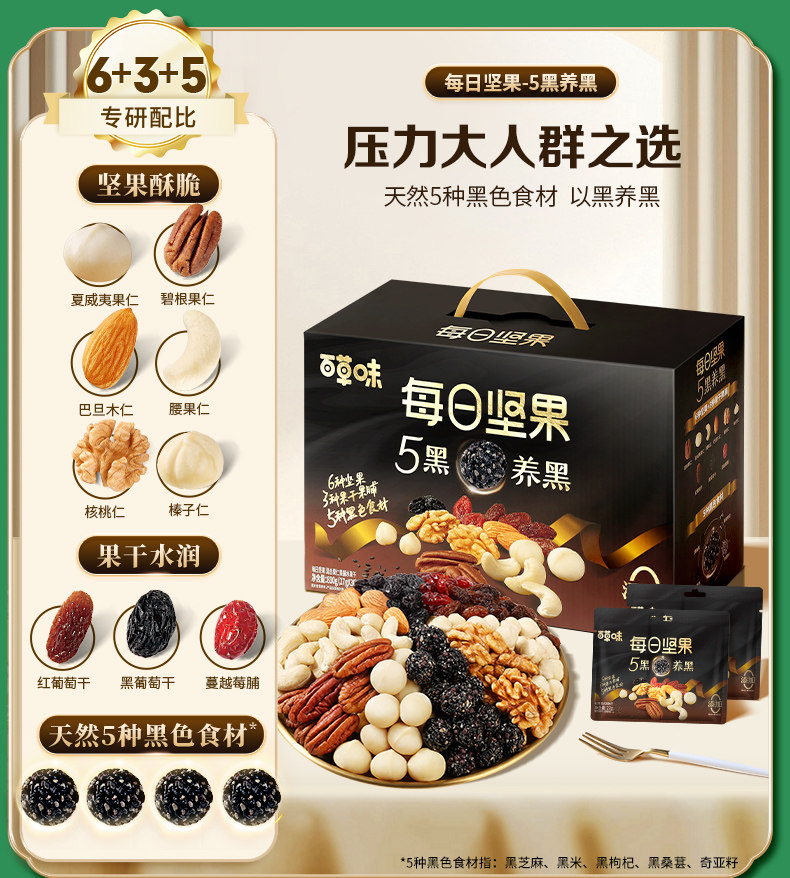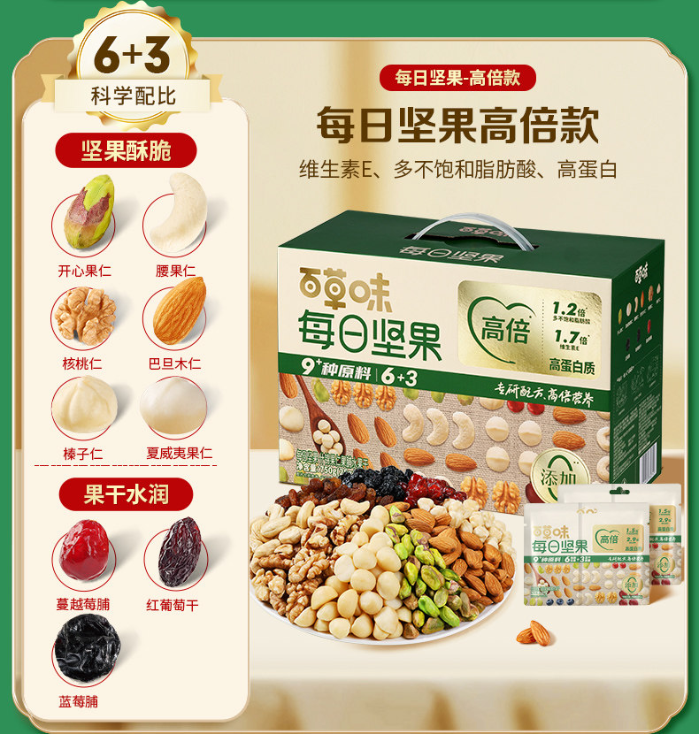 Product characteristics:1. Variety and mix 2. Individual packaging 3. Balanced nutrition 4. Healthy snacks 5. High quality control